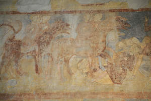 Fresco of Riders on Lion-Headed Horses with Snake Tails, San Severo Church, Bardolino, Italy
