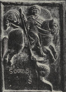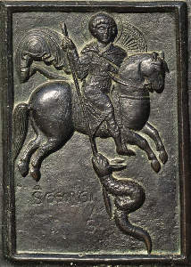 Saint George on Bronze Doors attributed to Barisano da Trani. Ravello Cathedral, southern Italy, 1179AD.