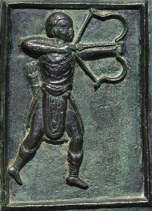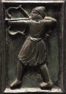 Saracen? Archer in Helmet with Turban on Bronze Doors made by Barisano da Trani. Trani Cathedral, southern Italy, c.1175. |
