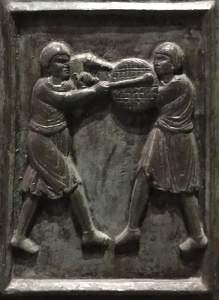 Negro? Infantry with Mace fighting on Bronze Doors attributed to Barisano da Trani. Ravello Cathedral, southern Italy, 1179AD.