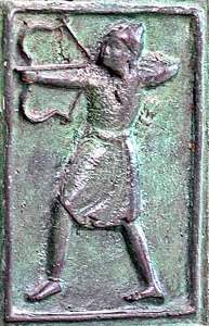 Saracen? Archer in Helmet with Turban on Bronze Doors attributed to Barisano da Trani. Ravello Cathedral, southern Italy, 1179AD. |