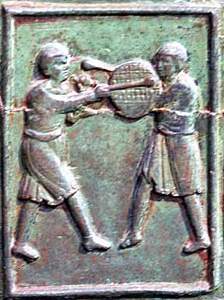 Negro? Infantry with Mace fighting on Bronze Doors made by Barisano da Trani. Trani Cathedral, southern Italy, c.1175.