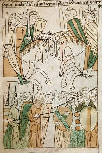 143v. Holofernes and his army riding to Bethulia
