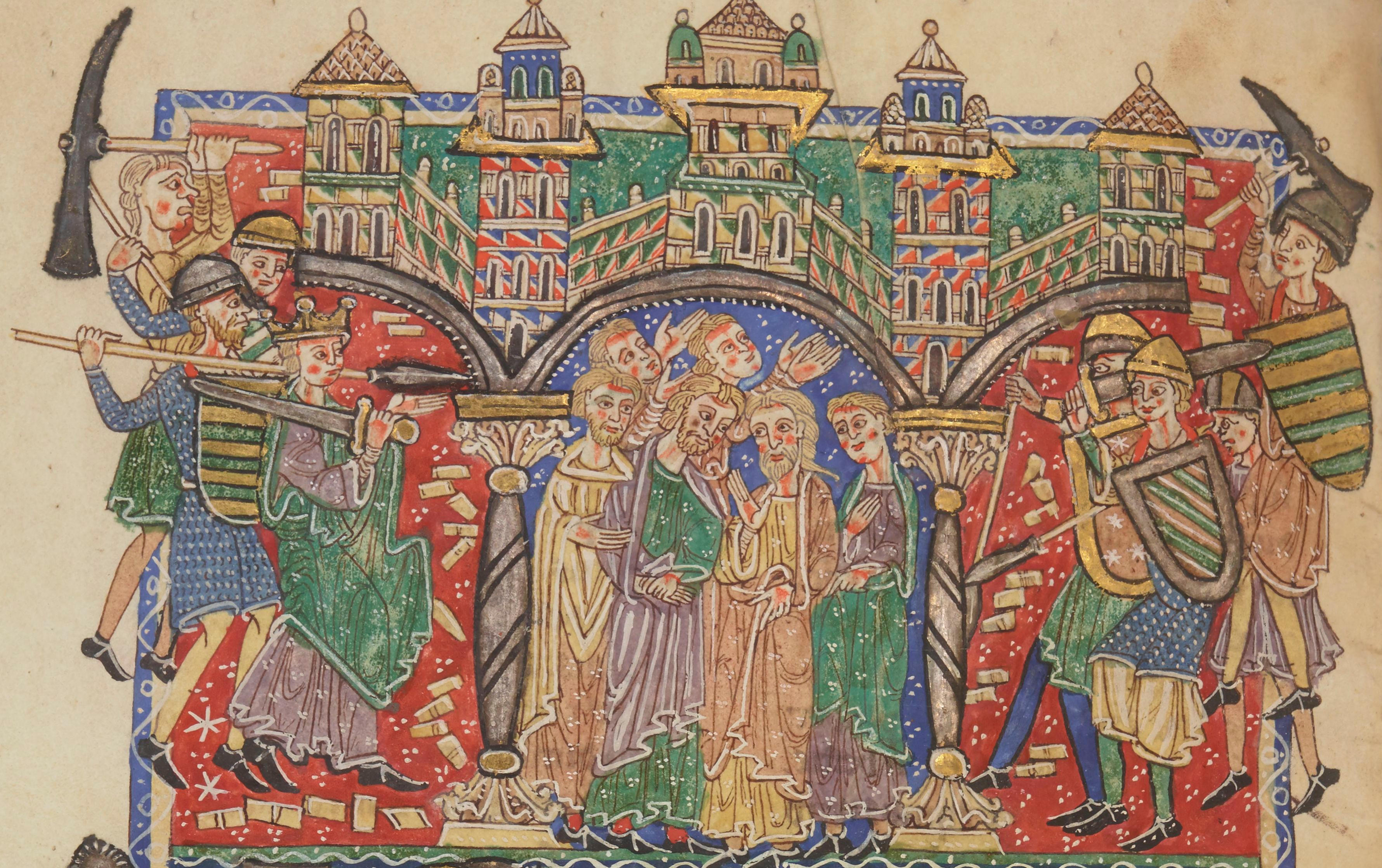 Back to the full image of the death of the two witnesses, Arroyo Beatus. Commentary on the Apocalypse by Beatus of Liébana, Spain, c.1220. BnF NAL 2290