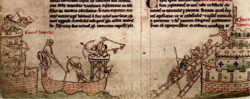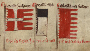 ![]() Banners of the Hospitalers and Templars and the Oriflamme of France, 1241 |
