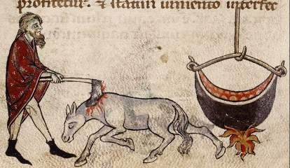 ![]() One Irish axeman slays another | ![]() An axeman slays a white mare |