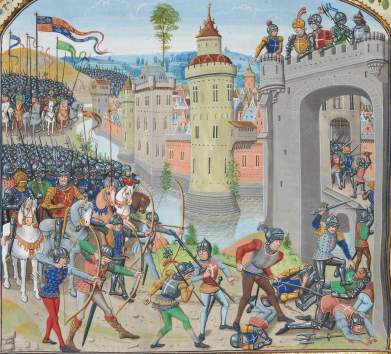 ![]() f.157v, Prise de Caen (1346) Capture of Caen |