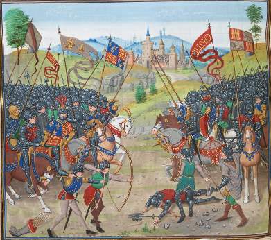 ![]() f.165v, Bataille de Crécy (1346) Battle of Crecy |