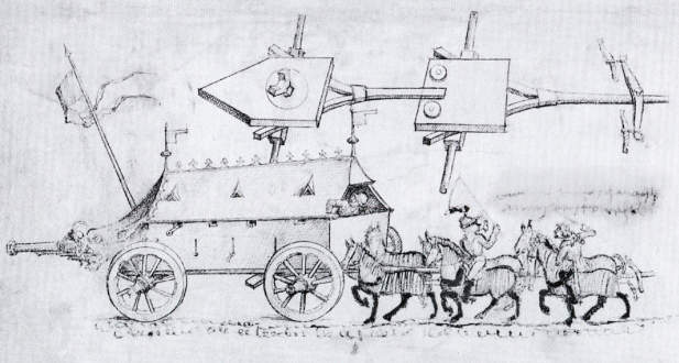 131. GERMAN WAR-WAGON c.1480 in Armies of the Middle Ages, Volume 2 by Ian Heath, based on Mittelalterliches Hausbuch von Schloss Wolfegg