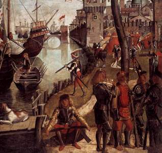 ![]() The Pilgrims' Arrival in Cologne, the Life of St Ursula, by Vittore Carpaccio, 1490-96 |