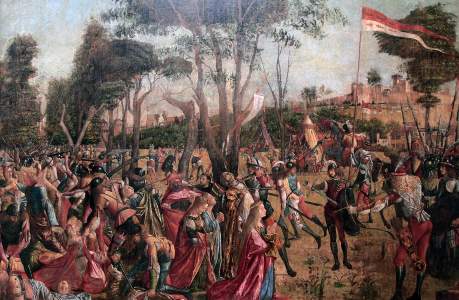 ![]() Martyrdom of the Pilgrims, the Life of St Ursula, by Vittore Carpaccio, 1490-96 |