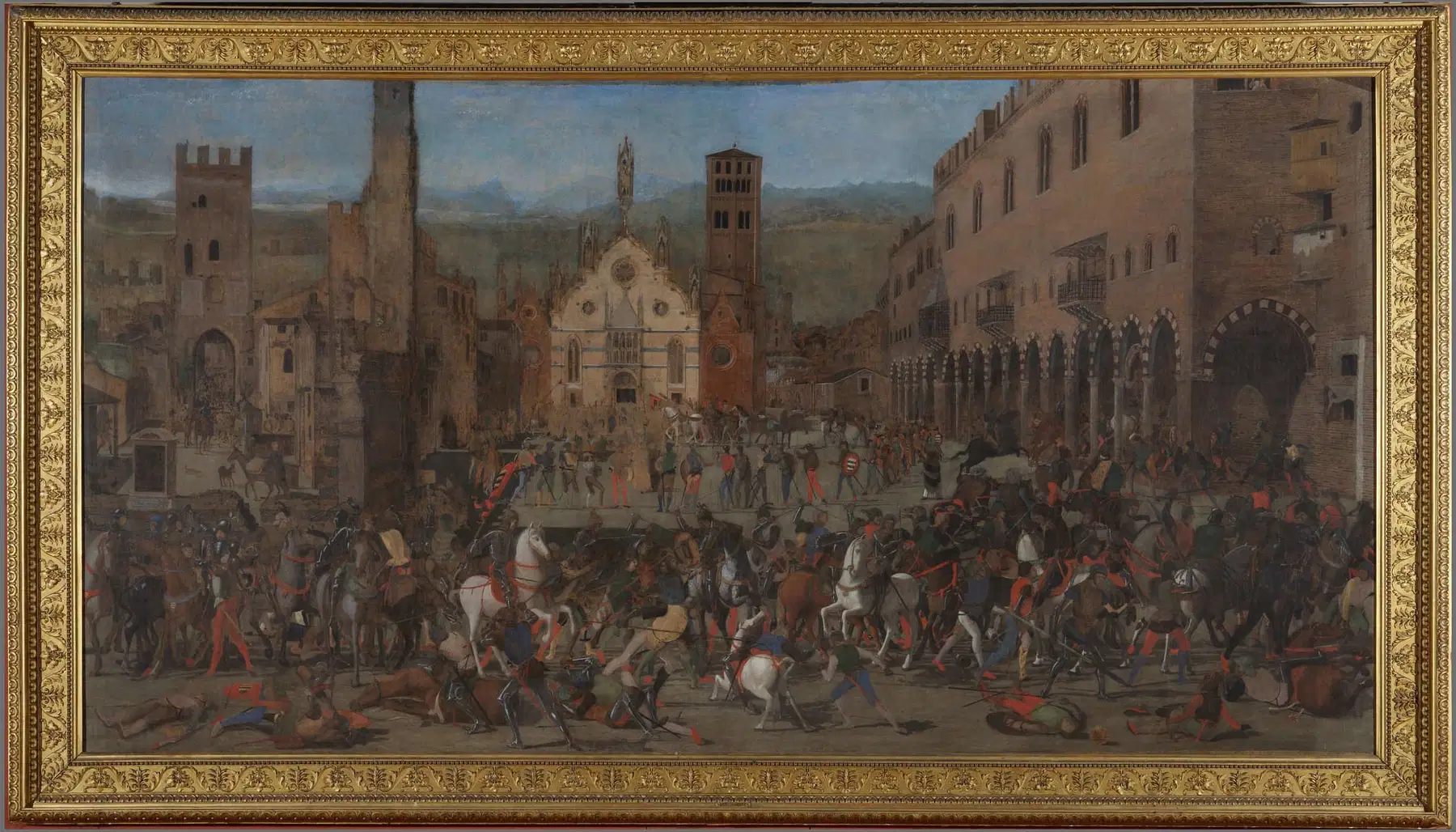 The fight between the Bonacolsi and Gonzaga in the Piazza Sordello in Mantua, by Domenico Morone, 1494