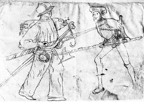 Drawings from c. 1502 by the German soldier of fortune (Landsknecht) Paul Dolnstein, who himself participated in the Danish army.
