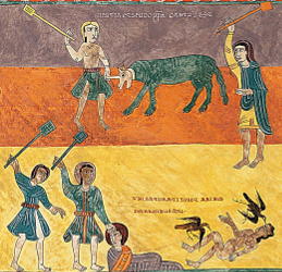 The Gerona Beatus is a 10th-century illuminated manuscript in the museum of Girona Cathedral, Catalonia, Spain.