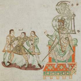 In the Middle Ages, psalters were often lavish illuminated manuscripts. The illuminations are based on the titles to the Psalms that appear in the Masoretic text but may not in translations. | |