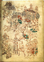 The codex contains the first book of Maccabees and excerpts from the fourth book of the Epitoma Rei Militaris by Vegetius. It was probably started in the Abbey of Saint Gall and finished at the Abbey of Reichenau. It is famous for its 28 illuminated pages, thought to be early depictions of a historical battle: the incursions of the Magyars in southern Germany. The manuscripts may have been bound together into a codex c.1190-1200.