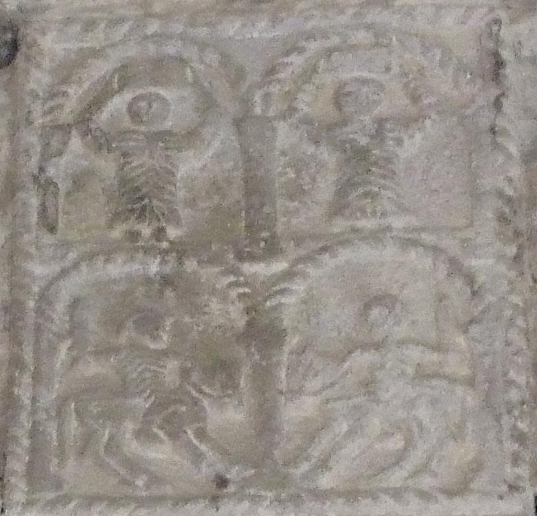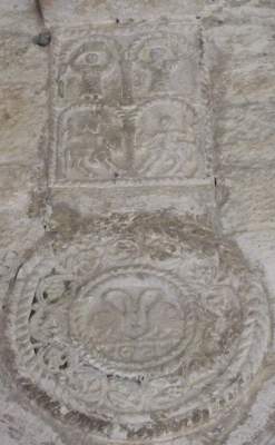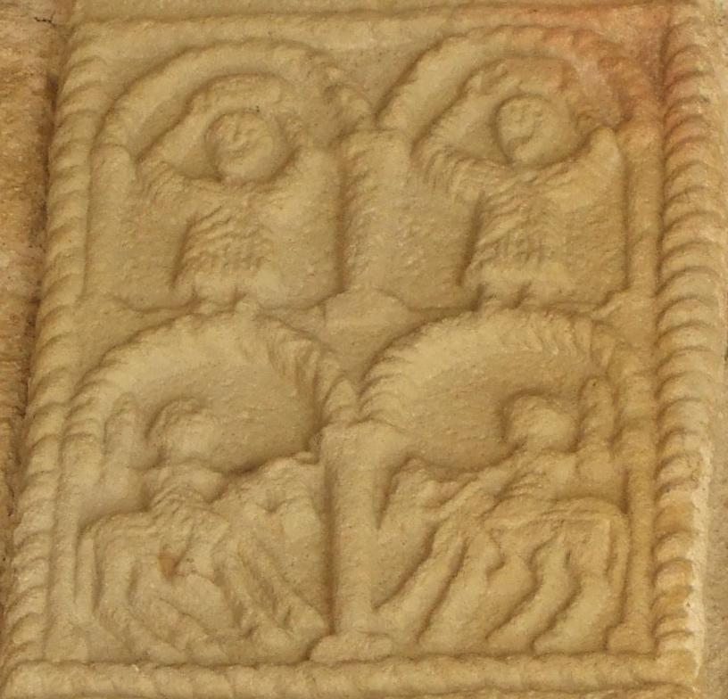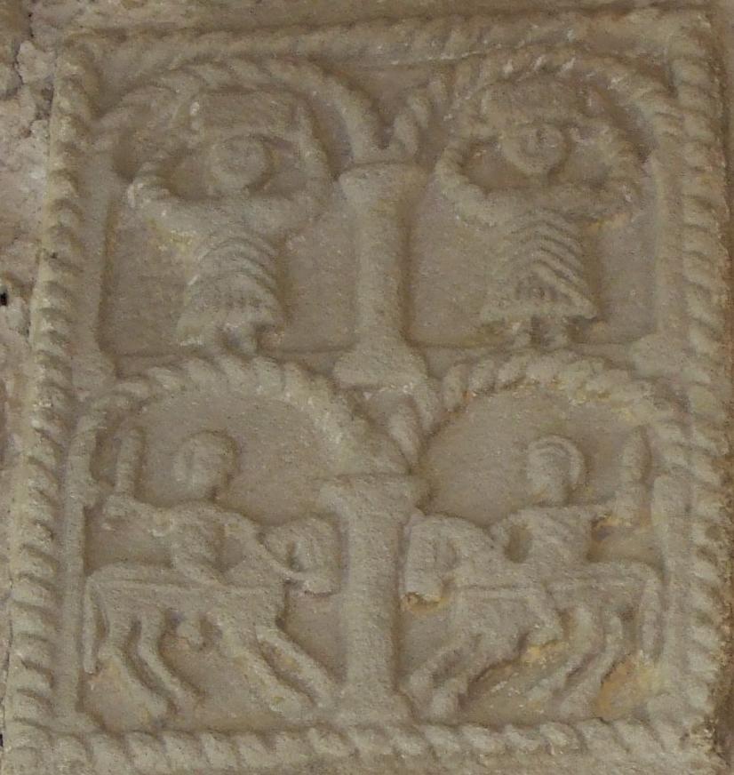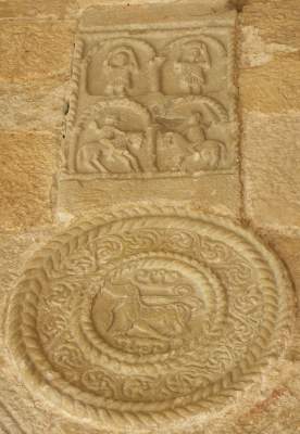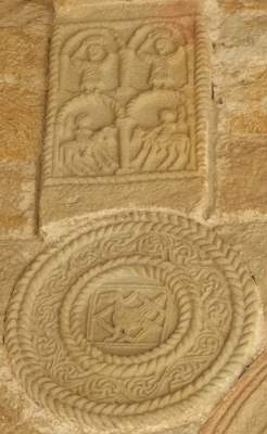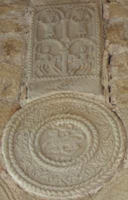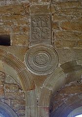 Reliefs on vaulting bosses, 848 AD, Spanish, in situ, Church of Santa Maria, Naranco