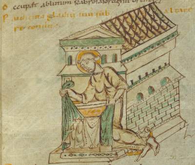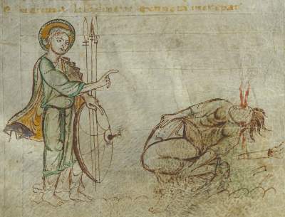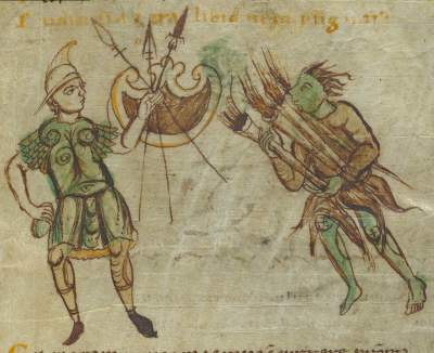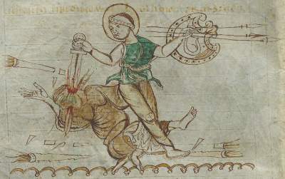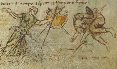 Prudentius (born in 348 in northern Spain, died after 405) spent most of his life following worldly pursuits, but later turned to writing, in which he aimed to glorify God and atone for his earlier sins. One of his most popular works is a poem called Psychomachia (Conflict of the Soul), which describes the battles between female personifications of human virtues and vices.