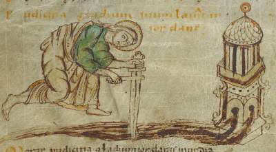 From the same manuscript: Abraham and Lot Patience and Job pass through the middle of the array |