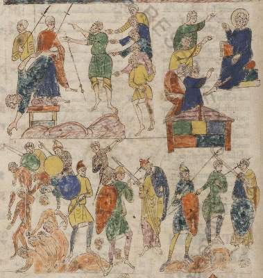 Among the most completely illustrated bibles are two Spanish bibles: the Bible of Sant Pere de Roda in the Bibliothéque Nationale in Paris and the other from the monastery of Santa Maria de Ripoll, sometimes called the Farfa Bible, in the Vatican Library. Both are infinitely more richly provided with pictures than the San Isidoro book and include a long series of illustrations for the Gospels. Curiously enough the Apocalypse, of which a great number of illustrations were available in earlier and contemporary Spanish manuscripts, is rather poorly represented. This again suggests that the sources were richly illustrated individual books and not complete bibles.