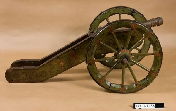 One Fifth Scale Model of a Swedish Regimental Cannon, 1632Grupp F I. Stycket har dekor i relief och årtalet 1632. En delfin saknas. Samhörande lavett med bilder av musketerare, trumslagare och pipare, alla från tiden för trettioåriga kriget. The piece is decorated in relief and the year 1632. A dolphin is missing. Associated gun carriage with images of musketeers, drummers and pipers, all from the time of the Thirty Years War. Source: Digitalt museum Identifier: AM.061488 ![]() 30 Years' War Regimental piece and carriage. This is the only preserved Swedish regimental cannon. It is a 1/4 scale model from 1632. It probably shows the apperance of the slightly modified design being manufactured that year. Gustavus, Siegroth and Torstensson tinkered with the design so each new batch manufactured was slightly different. In the end Torstensson introduced an improved design which was somewhat heavier but lacked the problems found in the Siegroth design. |