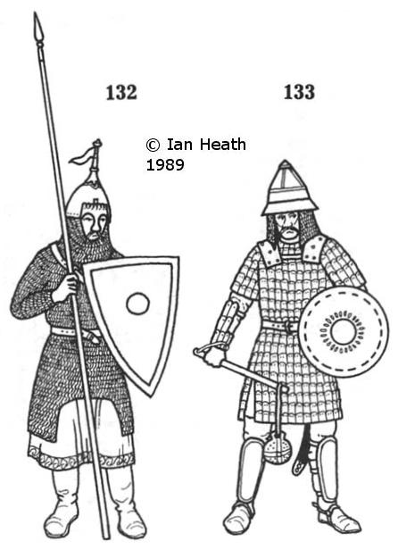 His brimmed helmet called a kapalin, is of Byzantine origin and could have a much taller point like that of 132.